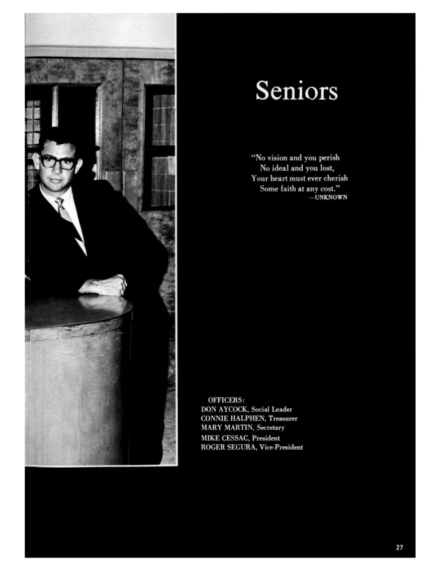 1967 will be leaving this student body. With them they will take thoughts