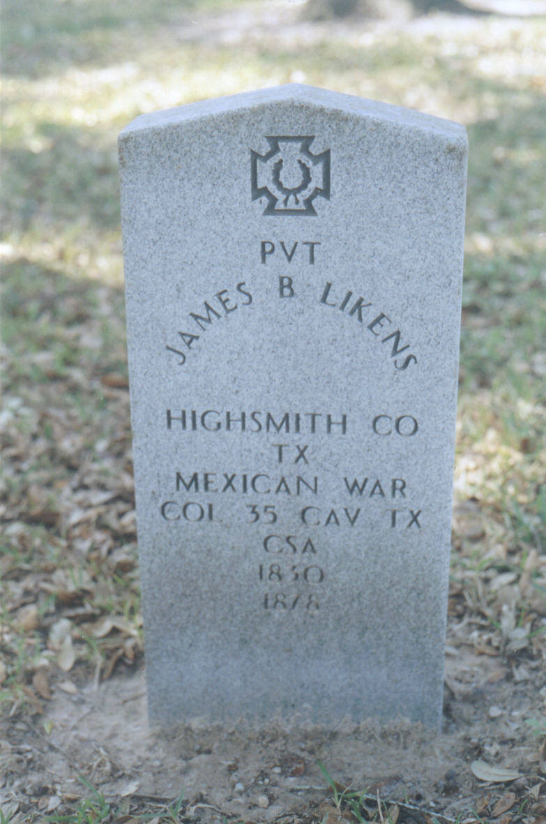 James B. LikensPioneer East Texas Lawyer and Military HeroBy W. T. Block and J. E. Williams{The writer is indebted to Bruce S. Allardice and James E. Williams for research material}James B. Likens, early East Texas lawyer and veteran of two wars, was born in Morgan County, GA, in 1829. His parents were Thomas M. Likens (born 1800 in Tennessee) and Hester F. Likens (born 1795 in Maryland). The latter may well have been his stepmother since Thomas M. Likens married Mrs. Hettie Irving in Georgia on May 7, 1830. He also had an older brother, John T., who was born in Tennessee in 1827.1 The Thomas M. Likens family is believed to have moved to Henderson, Rusk County, Texas between 1840-1842. George Alford, born in 1836, moved with his family to Nacogdoches, TX, as a child, and he reported attending a school with—“the Honorable James B. Likens, the illustrious lawyer...”2 At age 17, young James enlisted in 1846 in Capt. Samuel Highsmith’s Co. K, of Col. W. R. Young’s 3rd Texas Regiment during the Mexican War.3 According to Highsmith’s biography, his company participated in the Battles of Monterrey, Palo Alto, and Buena Vista as part of Gen. Zachary Taylor’s command. Young Likens’ father, Thomas M. Likens, was a first lieutenant, and his older brother, John T. Likens, was a second sergeant in the same company.4 After returning home from battle in 1847, young J. B. Likens studied and read law in the law office of Likens and Estill (Thomas M. Likens and W. H. Estill) in Henderson.5 The Likens family fortune multiplied greatly during the decade of the 1850s. On July 19, 1853 James B. Likens married Salina A. Cameron in Henderson;6 and by the time of the 1860 census, 2 children had been born into the household, Mary E., born in 1855, and Benjamin O., born in 1856. In 1853 Thomas M. Likens was still an attorney, but no longer practicing, and he had given up his position in the firm of Likens and Estill to his son James, in order to become a farmer and merchant. In 1860 T. M. Likens was living at census residence No. 1 with his wife Hester. His financial status was greatly improved during that decade, from $1,000 in 1850 to $2,500 in real estate and $5,165 in personal property in 1860. In 1855, T. M. Likens sold 5 acres of land which became the Henderson City Cemetery. He also classified himself as a farmer in the 1860 census, and owned probably a section or more of land in that year. He also owned 2 slaves in 1850 and 5 slaves in 186o. His older son, John T. Likens, died on May 11, 1859, having lost his wife and son a few years earlier.7 It was the terrible Henderson business district fire of Aug. 5, 1860 that provided the catalyst for James B. Likens to move away. In fact, when he was enumerated in the 1860 Rusk County census on Aug. 12th, he was living at residence No. 1602 in the town of Alma. J. B. Likens personal estate in that census included $4,000 of real property and $7,500 in personal property. In two hours’ time, fire swept through the business district—“from McDonaugh’s Hotel to Smither’s office, from Redwine’s Store to Likens’ Corner” —with a loss of 48 buildings and store stock equal to $250,000.8 And no one lost more heavily than the Likens family members. The law office of Likens and Estill suffered $5,000 damage to the buildings, furniture, and law books; Thomas M. Likens’ store suffered $12,000 damage to the building, fixtures, and stock of merchandise; and the estate of John T. Likens suffered $2,000 loss to building and fixtures. Heavily stricken in his pocket book, James B. Likens moved his family to Sabine Pass about Oct. 1860, and opened his new law office there.9 Likens had already built up a new practice in the thriving seaport town by April, 1861, when Fort Sumter fell to the Confederates and the Civil War began. On April 20, 1861, Sabine Pass organized a 102-man militia company designated as the “Sabine Pass Guard,” and Likens was enlisted as a private. Following a 90-day enlistment period, the company was reorganized and enrolled, and Likens was elected captain, most probably because of his active combat experience during the Mexican War.10 In Sept. 1861, Capt. Likens visited Gen. Paul O. Hebert’s Confederate headquarters in Galveston with a request to organize the 6th Battalion at Sabine Pass. Gen. Hebert not only granted his request, but also promoted him to Major of battalion, at the same time inducting Likens’ troops into the Confederate Army. Soon Likens Battalion had 6 companies assigned to it, 2 from Sabine Pass, and others from several Southeast Texas counties.11 In June 1862, Likens resigned in order to enroll a battalion of cavalry; and Capt. Ashley Spaight of Company F, was promoted to lieutenant colonel of Spaight’s 11th Battalion of Texas Volunteers.12 Later Major Likens moved into several Central Texas counties to enlist a battalion of cavalry known as Likens Cavalry Battalion. On Oct. 23, 1863, his unit was merged with Burns Cavalry Battalion to form the new 35th Texas Cavalry Regiment, and Likens was promoted to Colonel. In January, 1864, the 35th Texas Cavalry Regiment was patrolling in the San Bernard-Matagorda-Brazos River district. In March, 1864 Col. Likens and his unit were transferred to Gen. Richard Taylor’s Army in Western Louisiana, where it soon engaged in a dozen battles and skirmishes along the Red River, beginning with the Battle of Mansfield on April 8, 1864 and ending with the Battle of Yellow Bayou in May, 1864, and the Battle of Morganza in Sept. 1864. In Feb., 1865 the regiment was ordered back to Beaumont, where it was soon dismounted. The regiment was mustered out of service on May 27, 1865 at Harrisburg.13 And Col. Likens was paroled at Sabine Pass on July 12, 1865.14 According to the 1870 Jefferson County, TX census (page 545, res. 143), J. B. Likens was living in Beaumont as an attorney-at-law, with assets of $5,000 in real estate and $500 in personal property. His wife Salina was age 3