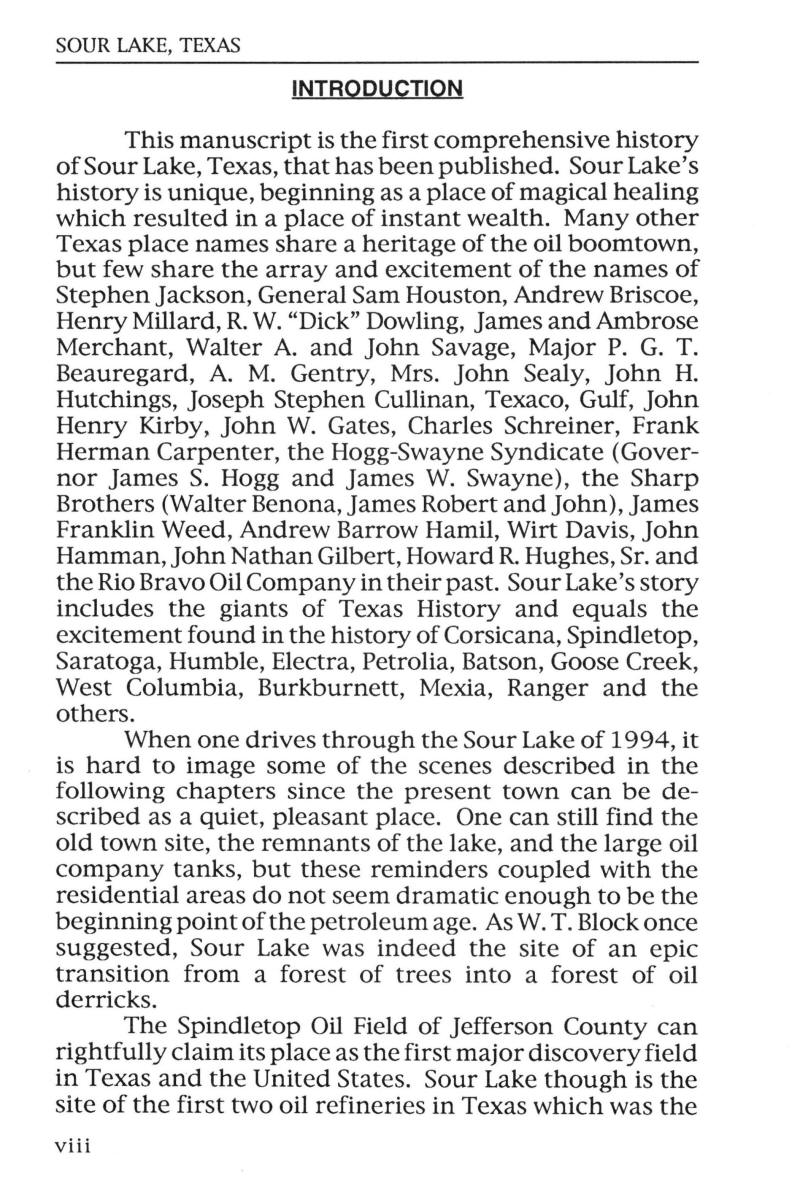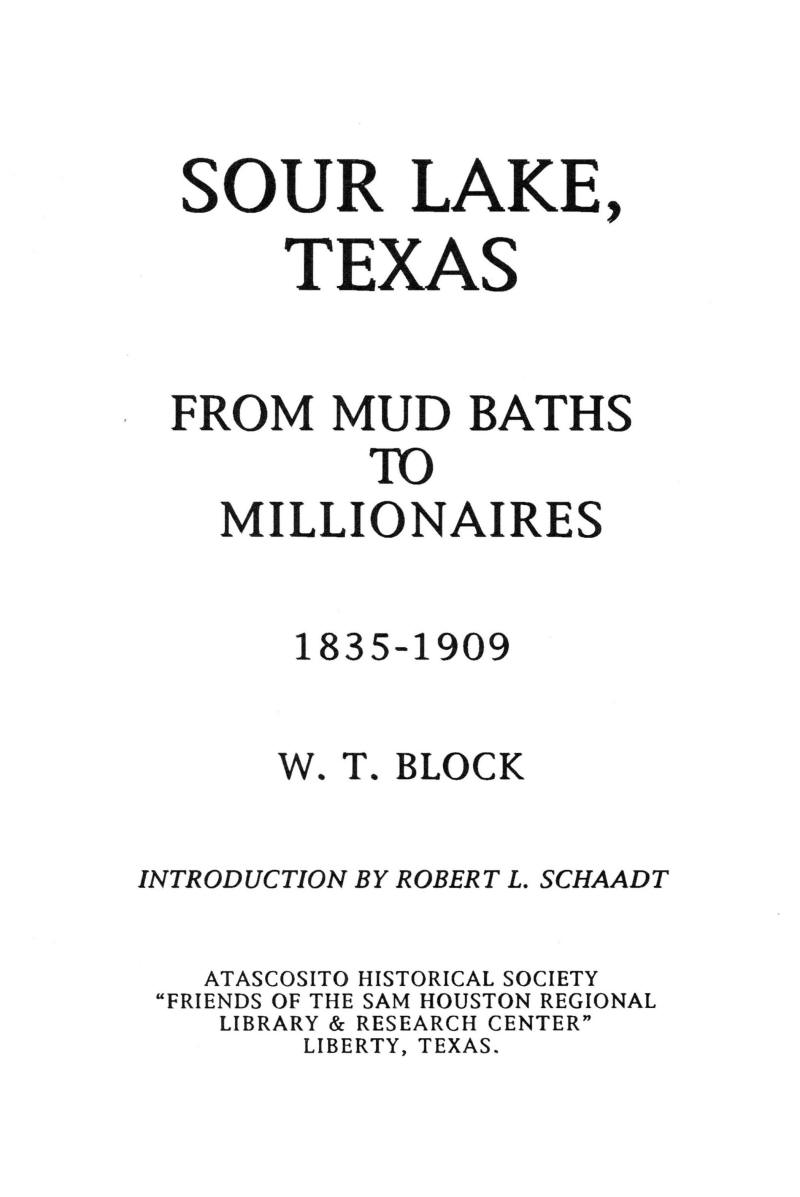 first comprehensive history of Sour Lake, Texas, that has been published.