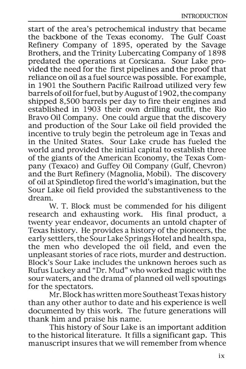and the Rio Bravo Oil Company in their past. Sour Lake’s story includes the