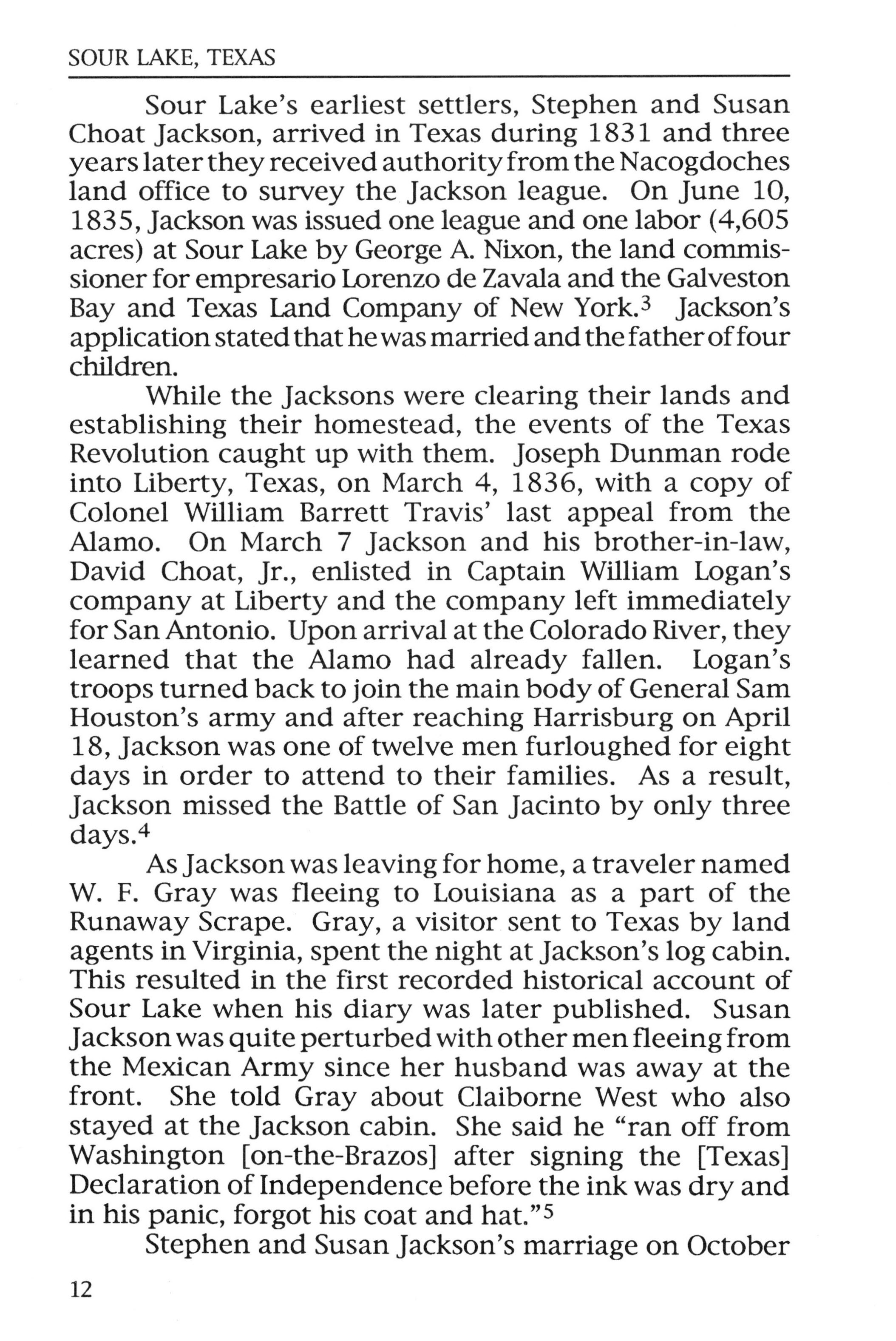names of Stephen Jackson, General Sam Houston, Andrew Briscoe, Henry